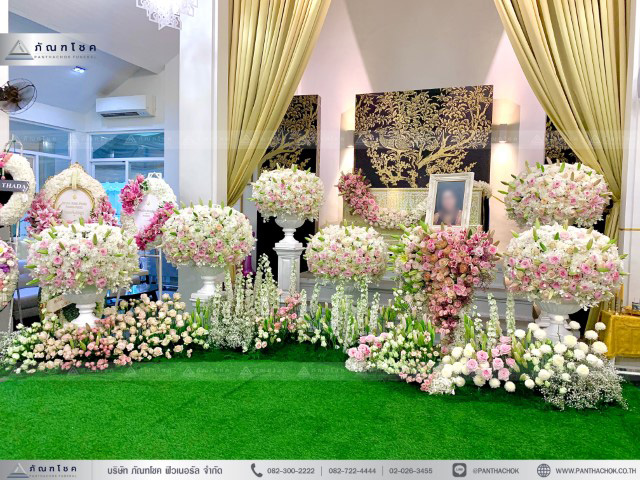 เบญจมาศ มัม คาร์เนชั่น เยอบีร่า กล้วยไม้ – สามารถเปลี่ยนสีดอกไม้ตามที่ต้องการได้ ดอกไม้อาจเปลี่ยนแปลงไปตามฤดูการ – อุปกรณ์ต่างๆเป็นการให้ยืมเพื่อจัดงานเท่านั้น นำกลับหลังเสร็จงาน – ทุกงานมัดจำงาน 30%