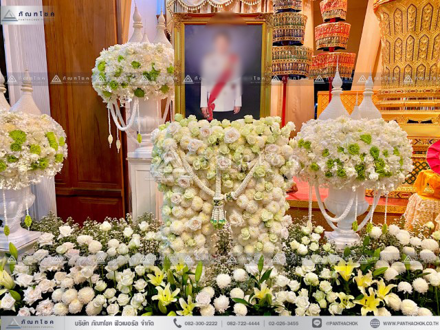 เบญจมาศ มัม คาร์เนชั่น เยอบีร่า กล้วยไม้ – สามารถเปลี่ยนสีดอกไม้ตามที่ต้องการได้ ดอกไม้อาจเปลี่ยนแปลงไปตามฤดูการ – อุปกรณ์ต่างๆเป็นการให้ยืมเพื่อจัดงานเท่านั้น นำกลับหลังเสร็จงาน – ทุกงานมัดจำงาน 30%