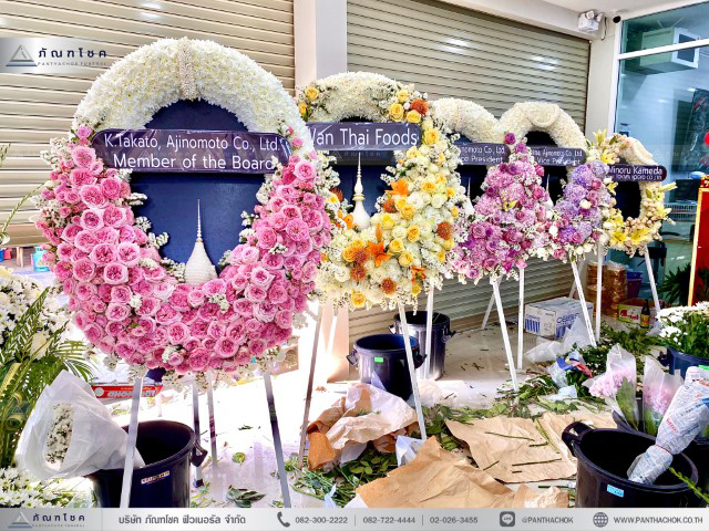 เบญจมาศ มัม คาร์เนชั่น เยอบีร่า กล้วยไม้ – สามารถเปลี่ยนสีดอกไม้ตามที่ต้องการได้ ดอกไม้อาจเปลี่ยนแปลงไปตามฤดูการ – อุปกรณ์ต่างๆเป็นการให้ยืมเพื่อจัดงานเท่านั้น นำกลับหลังเสร็จงาน – ทุกงานมัดจำงาน 30%