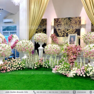 เบญจมาศ มัม คาร์เนชั่น เยอบีร่า กล้วยไม้ – สามารถเปลี่ยนสีดอกไม้ตามที่ต้องการได้ ดอกไม้อาจเปลี่ยนแปลงไปตามฤดูการ – อุปกรณ์ต่างๆเป็นการให้ยืมเพื่อจัดงานเท่านั้น นำกลับหลังเสร็จงาน – ทุกงานมัดจำงาน 30%